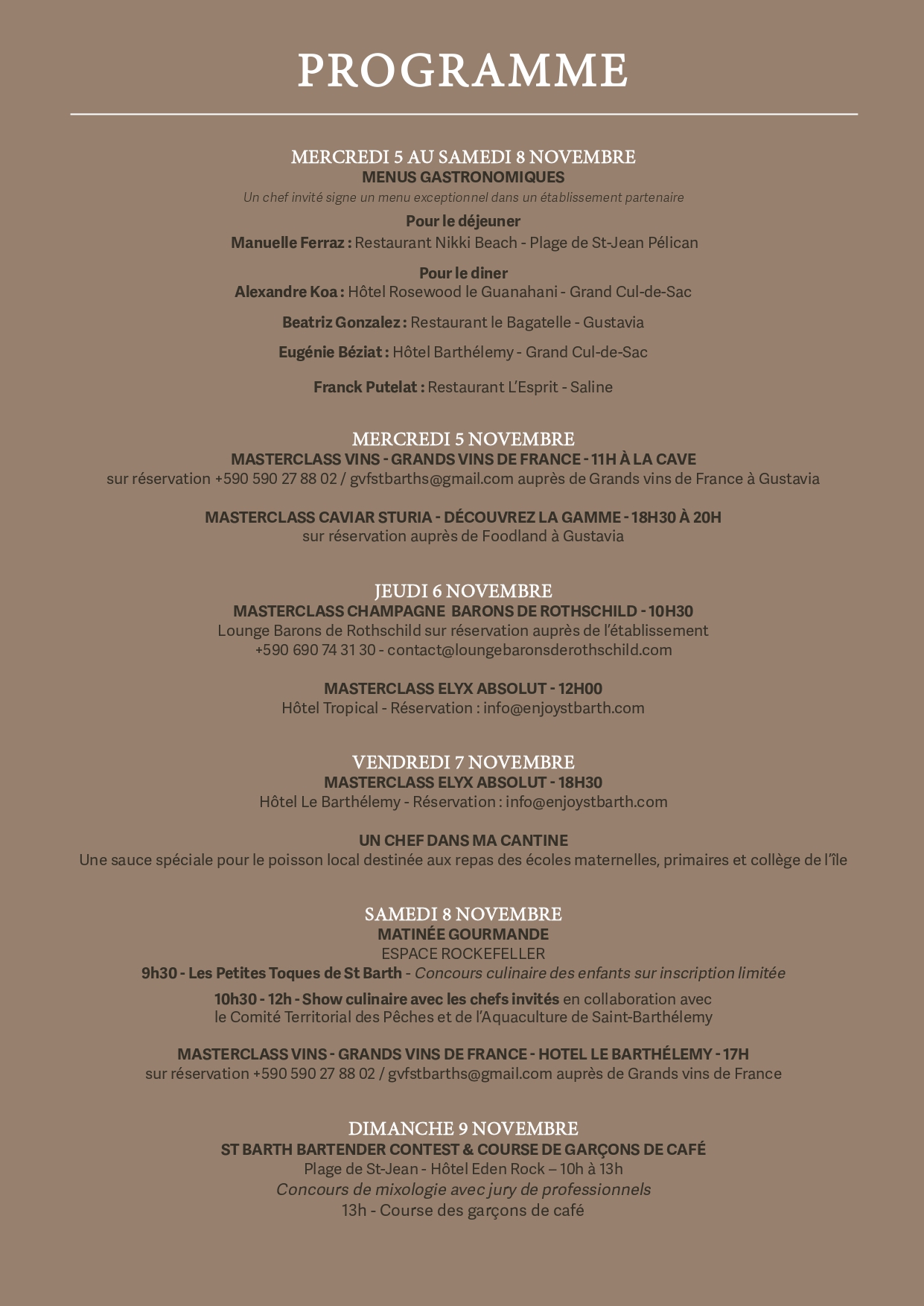 BROCHURE & PROGRAMME - ST BARTH GOURMET FESTIVAL